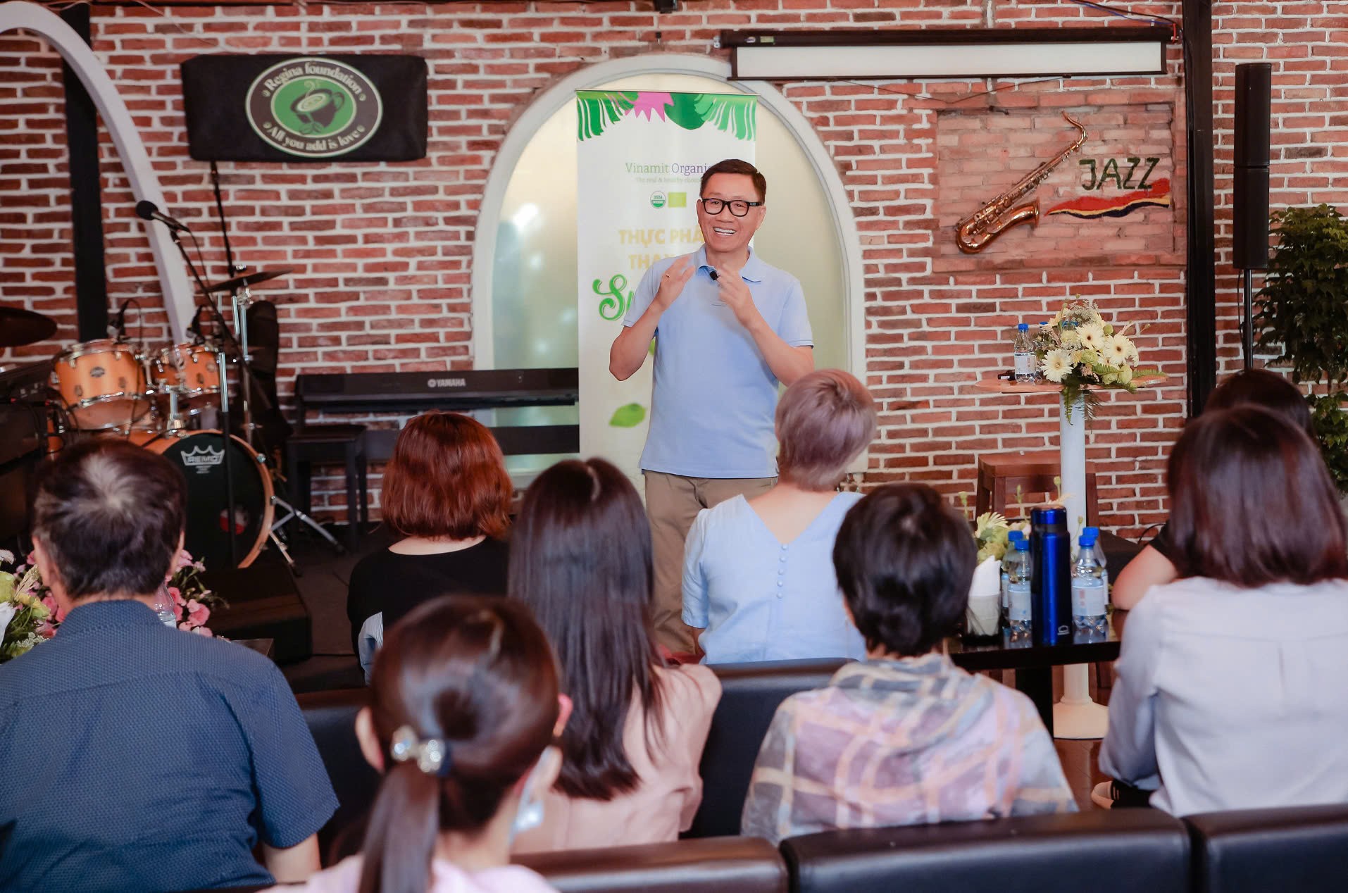 ✅ Cảnh quay có chiều sâu, kết hợp giữa không gian sự kiện và yếu tố thương hiệu.